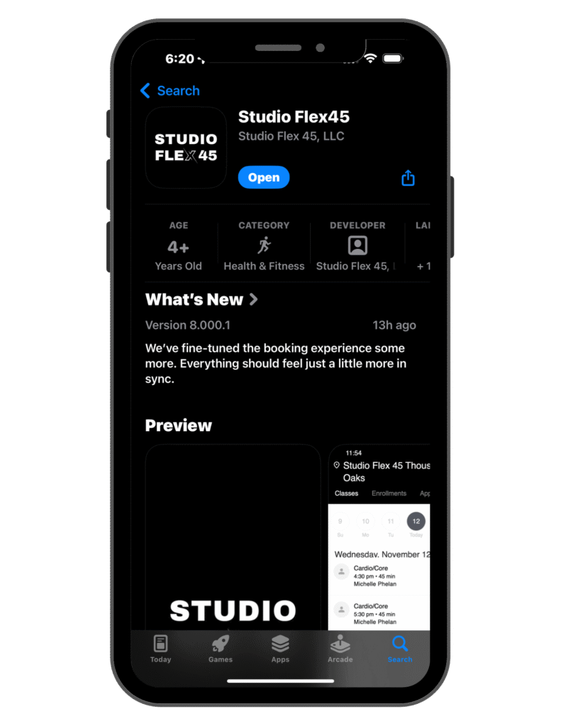 Download the Mindbody App and search for Studio Flex45 and bookmark it. Once installed view current schedule, pricing and start booking today.